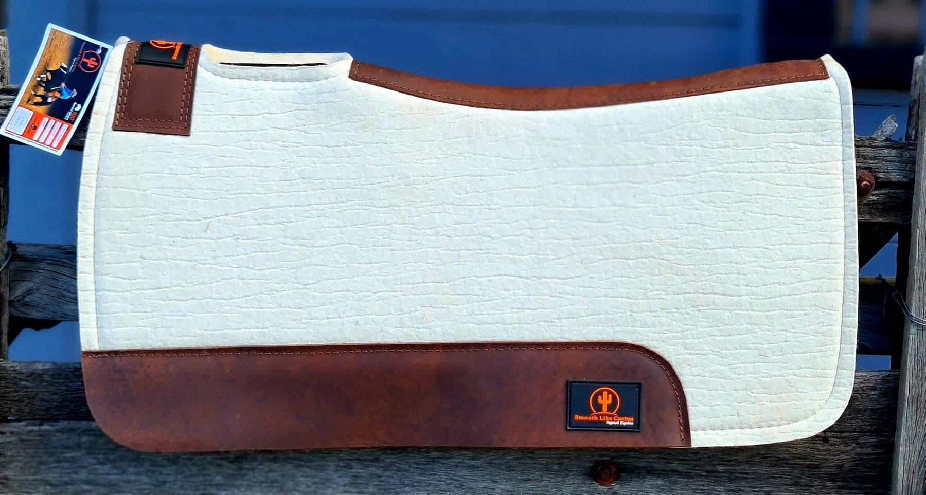 White NZ Wool 16mm Contoured Saddle Pad with Brown Leather Wear Pads.